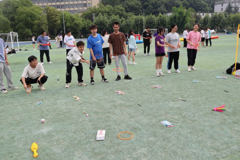 活动伊始,工作人员向前来参加活动的同学介绍了每项游戏的规则,引导同学们参与相关游戏。在“共同分担”游戏中,同学们围成一圈背对背坐在地下手臂互扣,通过团队协作和坚韧不拨的毅力一起用力相互依靠着站起来,由于游戏难度较大,许多队伍在游戏过程中遇到了不少的挑战和困难,但是选手们坚毅地面对压力,共同协作,最终取得了成功。通过这项活动,同学们的身体素质得到了增强,锻炼了同学们的心智,培养了其团队协作精神和抗挫折能力;在“同心鼓运动”游戏中,大家心往一处想,劲往一处使,颠起小球的不只是鼓面还有我们的热情和团结,真正是“同心”逐梦,“鼓”动精彩;在“接力赛”游戏中,随着裁判一声“开始”,同学们像离弦之箭飞奔而出,用着最快的方式穿过三个障碍物,尽显游戏的竞技性。整个过程尽显美好,活动过程中充满了欢声笑语。现场秩序井然,同学们脸上洋溢着轻松的笑容。同学们纷纷表示此次活动收获颇丰,放松了心情,锻炼了能力,强健了体魄。最后,在轻松愉快的氛围中,本次运动会圆满结束。
