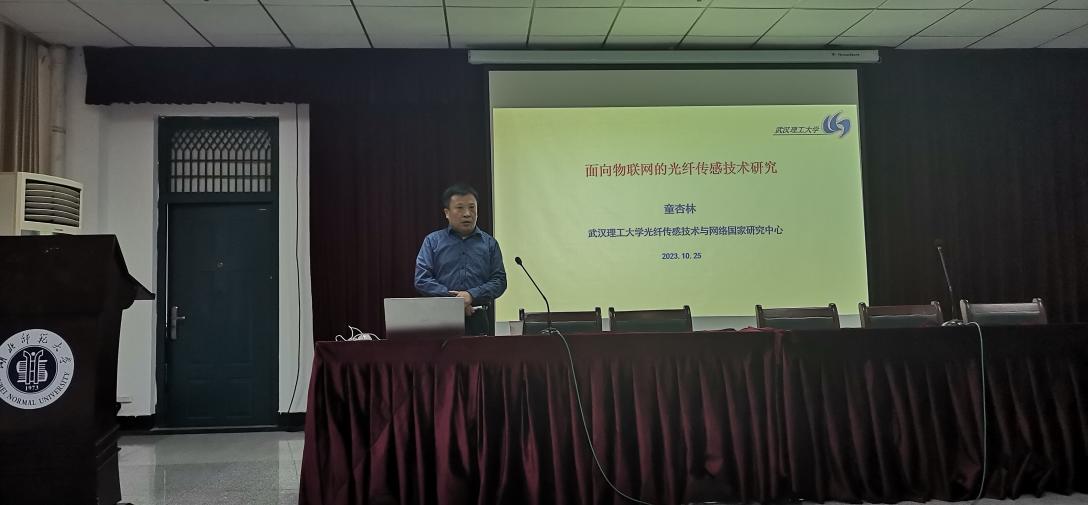 2023年10月25日,为庆祝三亿体育app50周年校庆,加强学院的实验室、学科和博士点建设,三亿体育特邀请武汉理工大学光纤传感技术与网络国家工程中心童杏林教授来公司讲学。童教授在信息大楼二楼学术报告厅做了《面向物联网的光纤传感技术研究》的学术报告。报告会由三亿体育副经理单传家教授主持,三亿体育师生代表聆听了此次报告。