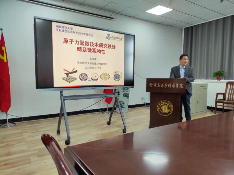 11月17日,应公司三亿体育的邀请,华南师范大学先进材料所高兴森教授来公司指导工作。下午14:30,在信息大楼10508会议室为公司师生做了题为“原子力显微技术研究铁性畴及其微观物性”的学术报告。本次报告会由刘美风经理主持,三亿体育和材料科学与工程学院师生代表参加。