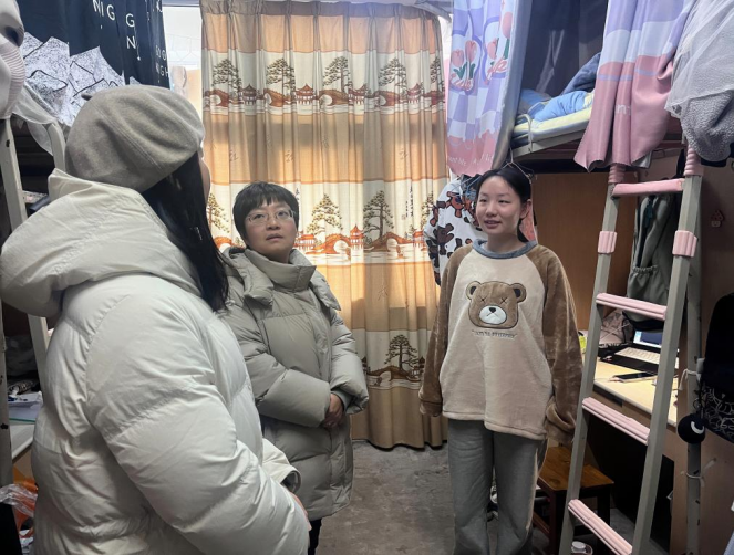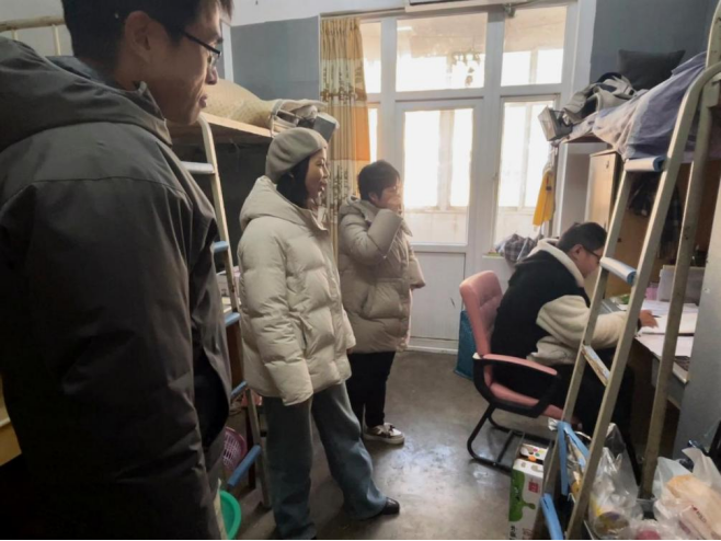 在慰问活动中,党委书记孙丹娟代表学院向同学们表达了深切的关心和祝福,她走进每间寝室,与同学们亲切交谈,“报考了哪个学校?”“复习的怎么样?”细心询问同学们的备考进度及生活状况,并提醒同学们在备考的同时,也要注意防寒保暖,合理安排作息时间。经理刘美风鼓励考研学子,要坚定信心、勇往直前,为自己的梦想而努力奋斗。党委副书记刘雅强调了积极心态的重要性,她叮嘱同学们在最后冲刺阶段要不畏艰难、持之以恒、凝心聚力、稳定情绪,以最佳的精神状态迎接考试。