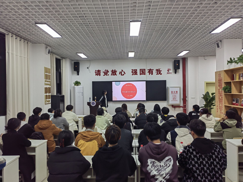 随后,胡瑞杰同学针对公司学风建设方案进行解读,并详细介绍了本年度学院将持续开展的一系列学风建设活动,如:早自习、优秀学习笔记评比、英语四六级经验分享会、“学风建设手抄报”评比、科普实验讲解比赛等,鼓励大家积极宣传和参加活动,促进自身全面发展。