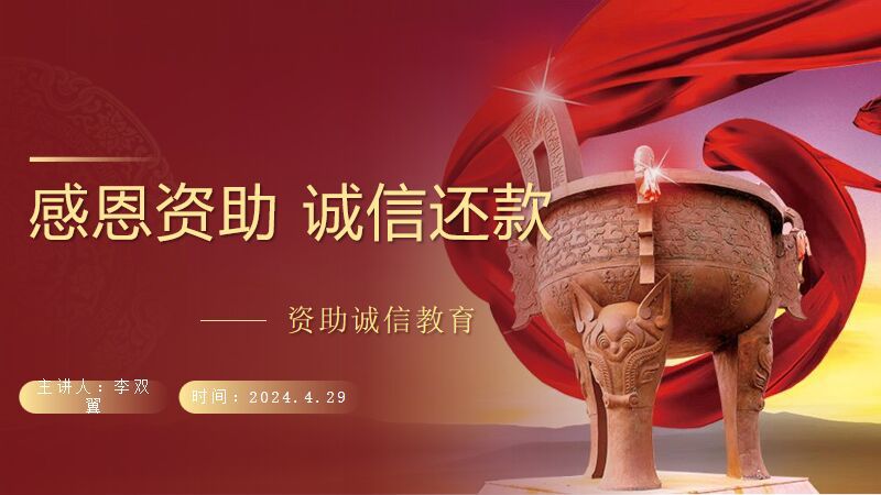 讲座最后,李双翼对同学们提出了殷切的期望。她希望同学们能够珍惜这份来自国家和社会的关爱,用诚信和感恩的心去回报社会。同时,她也鼓励同学们在未来的生活和工作中,继续发扬诚信精神,做一个有责任感、有担当的人。