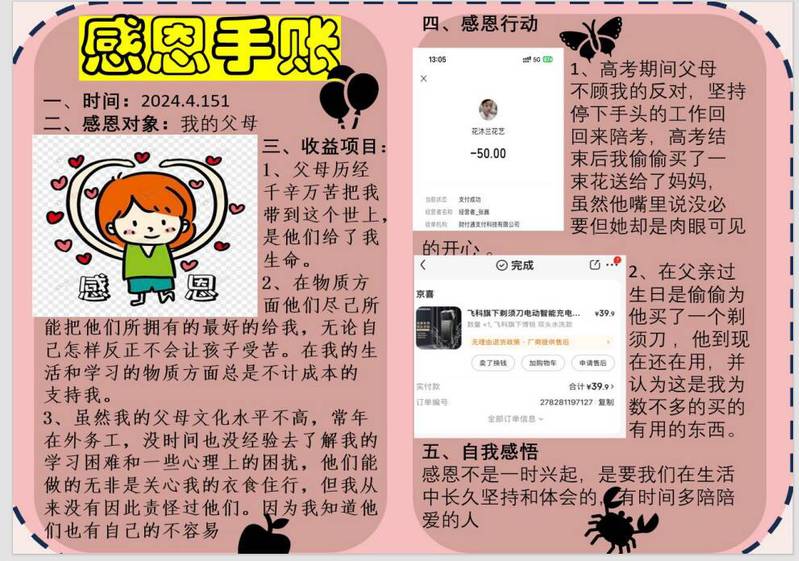 为了充分展示员工资助政策实效,进一步推广员工资助政策,4月8日—4月20日,三亿体育组织受助员工开展“晒账单 述感恩”最美手绘感恩账单活动,引导员工把有限的资金投资在最有意义的事情上,树立崇尚节俭、合理消费的价值观,增强了社会责任意识、感恩意识,发挥了资助育人作用。