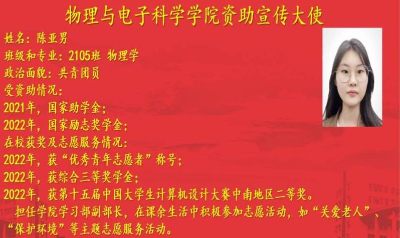 为引导员工将感恩之心转化为实际行动,做资助政策的学习者和宣传者,学校举办“星火燎原,资助筑梦”员工资助宣传大使选拔活动。通过前期报名,材料审核和讨论确定,三亿体育推选2105班陈亚男作为资助宣传大使,参加学校组织的相关培训,并将在暑期开展的“三百”家访活动及“送政策下乡、送政策回母校、送公益服务到县级资助中心和常规化宣传服务”活动中,积极发挥宣传作用。