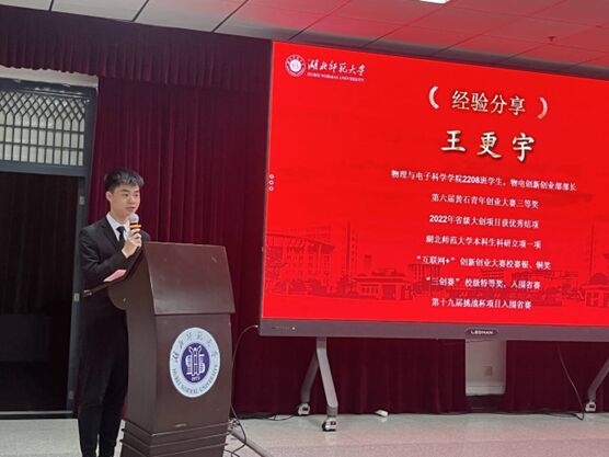 颁奖结束后,李佳乐、罗紫娟、王更宇等作为优秀项目负责人代表,上台分享比赛经验,对参赛提出指导性建议。李佳乐结合自己的亲身经历,分析了比赛过程中可能遇到的问题,并提出可行的解决方法;罗紫娟展示了她们团队的计划书目录构成和内容,重点说明了模块条理性;王更宇详细梳理了计划书和ppt的板块设置及其指向,强调了排版和图表在展示项目时的重要性,并特别提醒参赛者注意比赛心态的调整,要以积极、自信的态度面对挑战。活动结束后,创新创业部进行奖品奖状的发放。