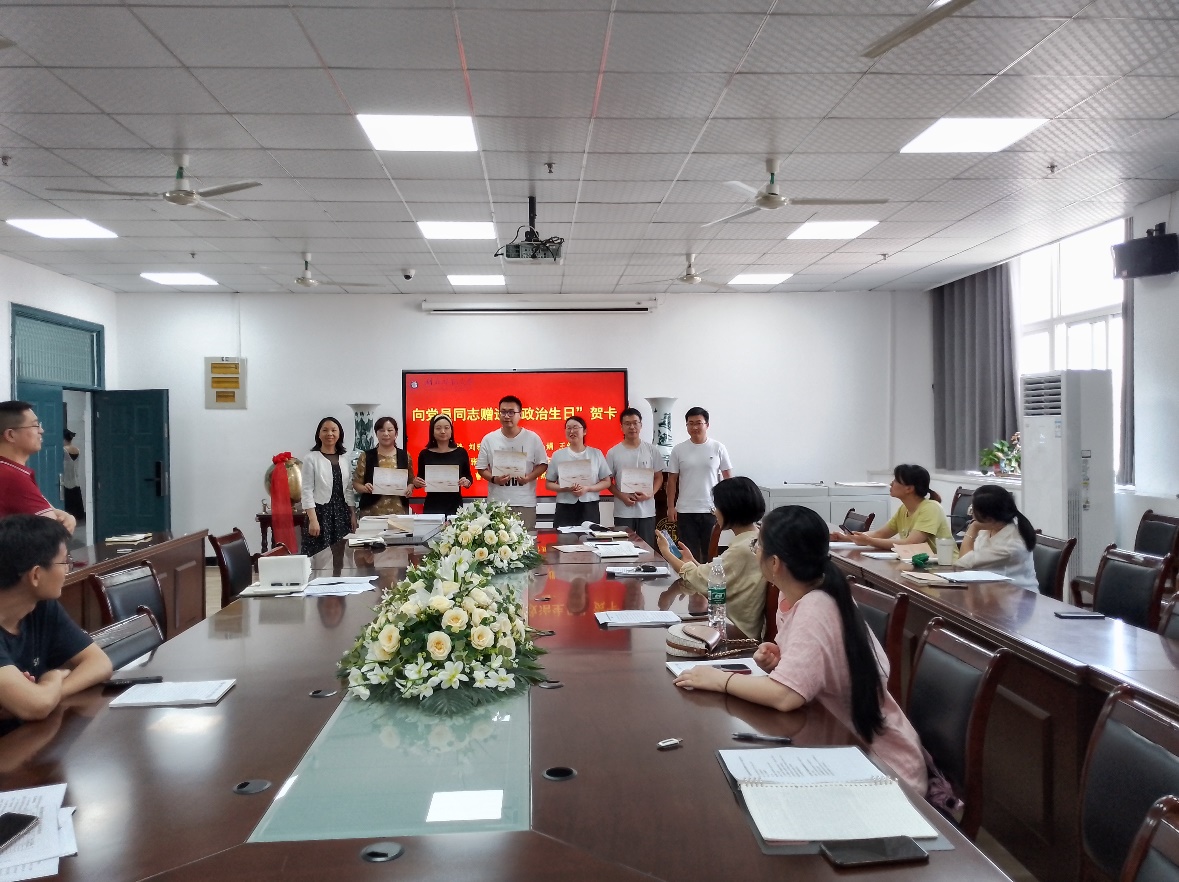 随后,党支部给5月份入党的同志过集体政治生日。公司党委书记孙丹娟和教师第二党支部副书记赵豪给同志们颁发“政治生日贺卡”。