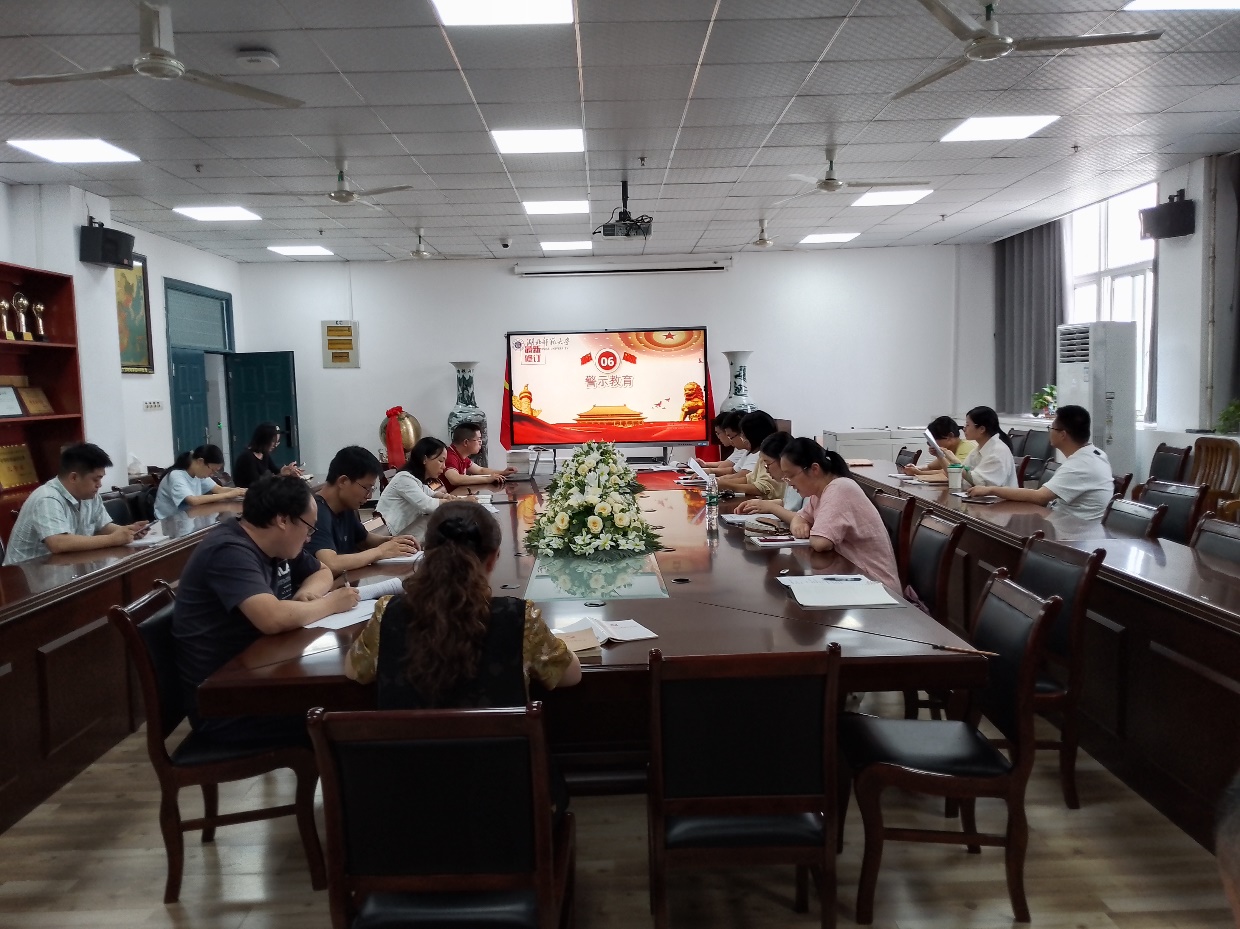 高瑜、鲁池梅、曹慧云等同志领学习近平主持召开新时代推动西部大开发座谈会、在重庆考察的讲话精神以及为第六批全国干部学习培训教材所作的《序言》。田学泽、郑瑛等同志领学《中国共产党纪律处分条例》第122条至第158条。施孟文同志领学《高校反腐警示录》,并集中观看警示教育电视专题片《无所遁形》。