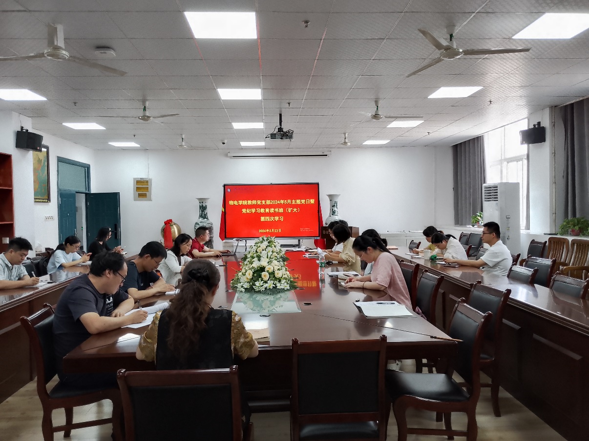 2024年5月23日下午,三亿体育第一和第二教师党支部全体党员、入党积极分子在信息大楼10508开展了以“学纪明责筑忠诚 担当实干促发展”为主题的党日活动暨党纪学习教育读书班(扩大)第四次学习。