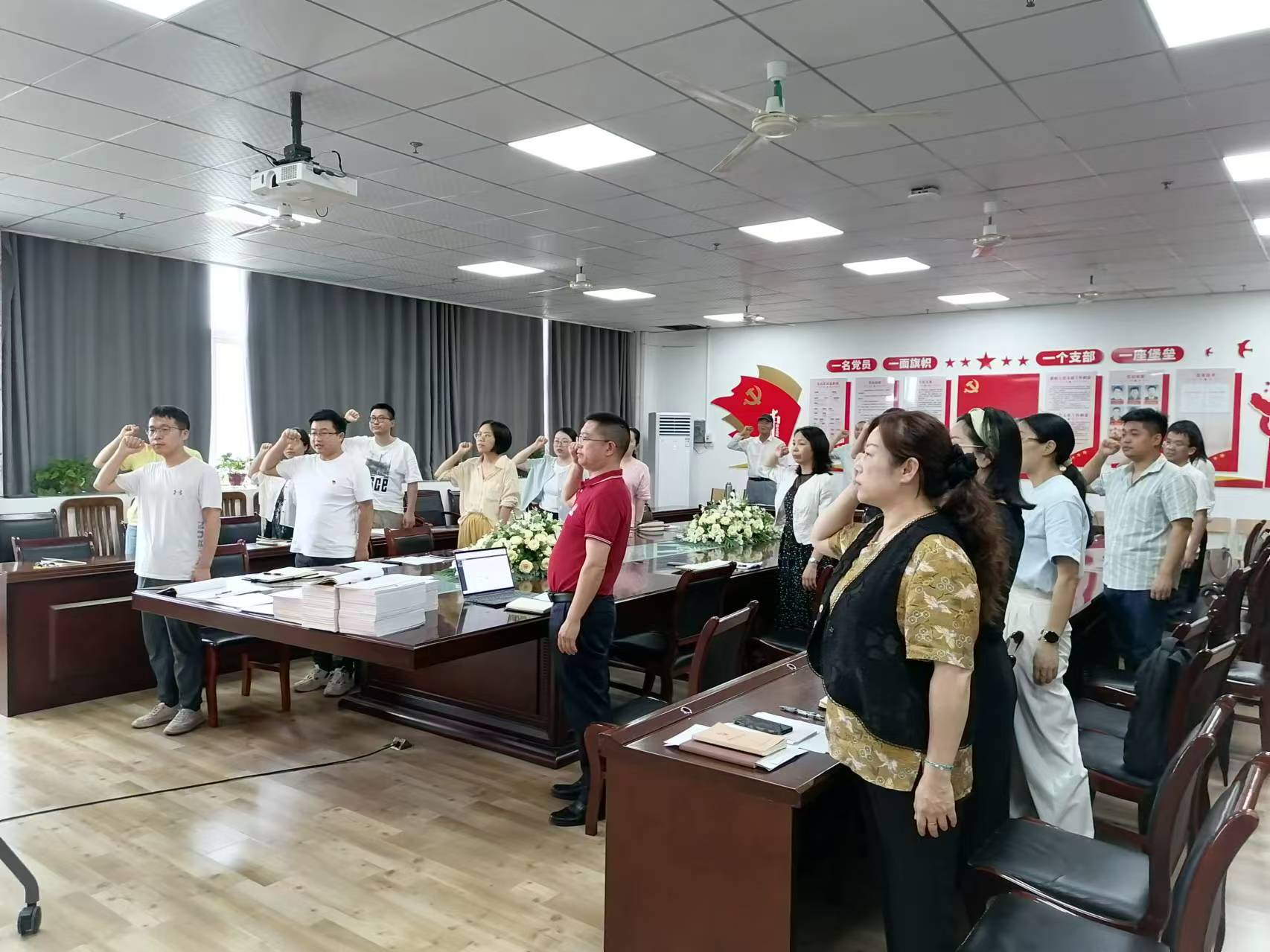 活动中,全体党员集中交纳党费,重温入党誓词,集体诵读党章。
