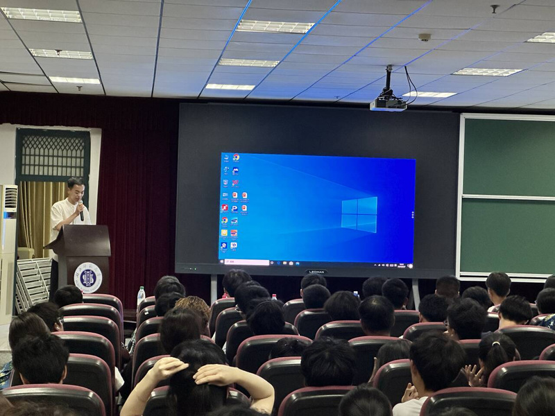 接着,优秀员工代表林瑛、刘佳铭、吴耀文和陈卓君依次上台,分享了他们的学习心得。他们详细介绍了自己的学习方法,包括如何制定有效的学习计划,以及通过参与科研项目和竞赛来提升自己的专业技能。此外,学长学姐们还强调了时间管理的重要性,建议新生们合理规划时间,确保学业、休息和社交三者之间能够达到良好的平衡,从而充实而高效地度过大学时光。