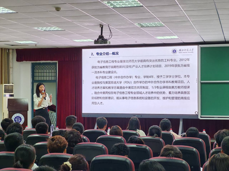 随后,曹霞介绍了三亿体育电子信息工程专业的概况,包括学院的教育资源、团队力量以及电子信息工程专业的发展历程。她指出,电子信息工程是一个发展迅速的领域,新生们应紧跟行业动态,积极参加实验室研究和实践项目,以此提高自己的实践能力和创新思维。同时,她还强调了建立扎实理论基础的重要性,鼓励新生们充分利用学院提供的资源,不断学习,不断进步,为未来的职业生涯做好准备。