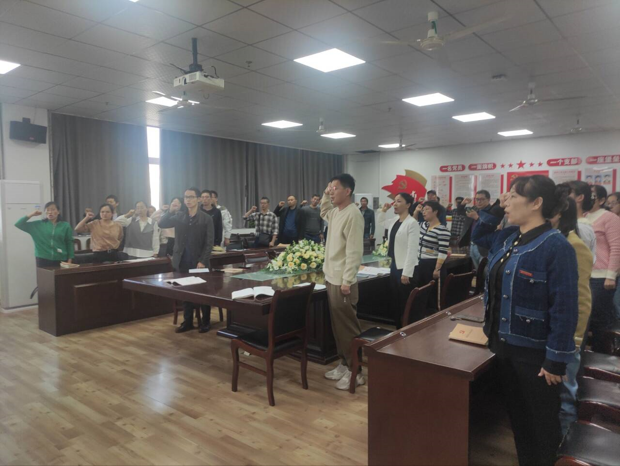 活动中,全体党员集中交纳党费,重温入党誓词,集体诵读党章。