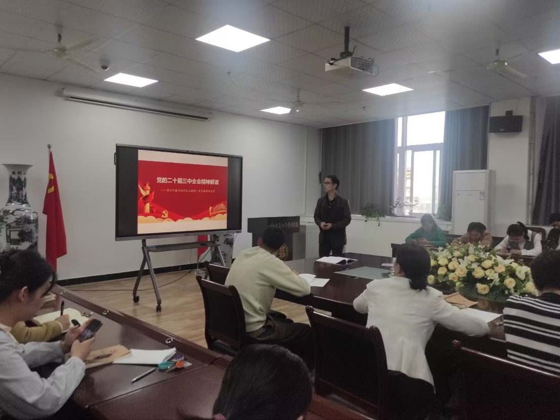 支部书记盛苏同志讲解了以“党的二十届三中全会精神解读——紧扣中国式现代化主题进一步全面深化改革”为主题的专题党课,之后,仇奥同志发表了自己学习党的二十届三中全会精神的心得体会。