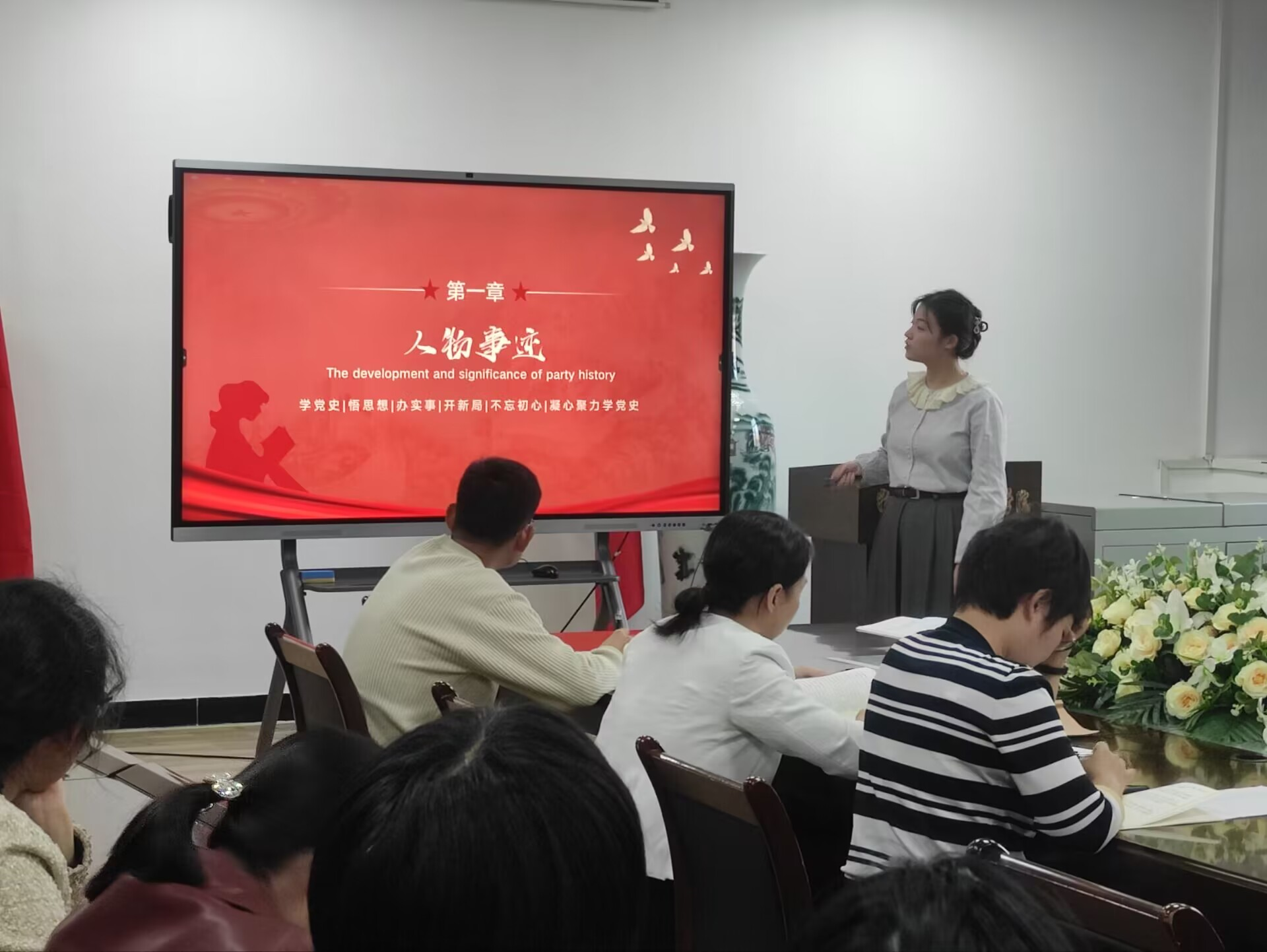 邢令义、唐雄辉、曹霞等同志领学了习近平总书记在全国教育大会上强调:“紧紧围绕立德树人根本任务,朝着建成教育强国战略目标扎实迈进”的重要讲话精神、中共教育部党组关于做好习近平同志《论教育》学习宣传工作的通知、习近平总书记在国家勋章和国家荣誉称号颁授仪式上的讲话和在全国民族团结进步表彰大会上的讲话的重要讲话精神;支部书记盛苏同志给十月份入党的同志过集体政治生日,赠送“政治生日贺卡”;晏天琦同志主讲了以“一心为了祖国和人民的事业——两弹一星元勋郭永怀”为主题的优秀党员故事。