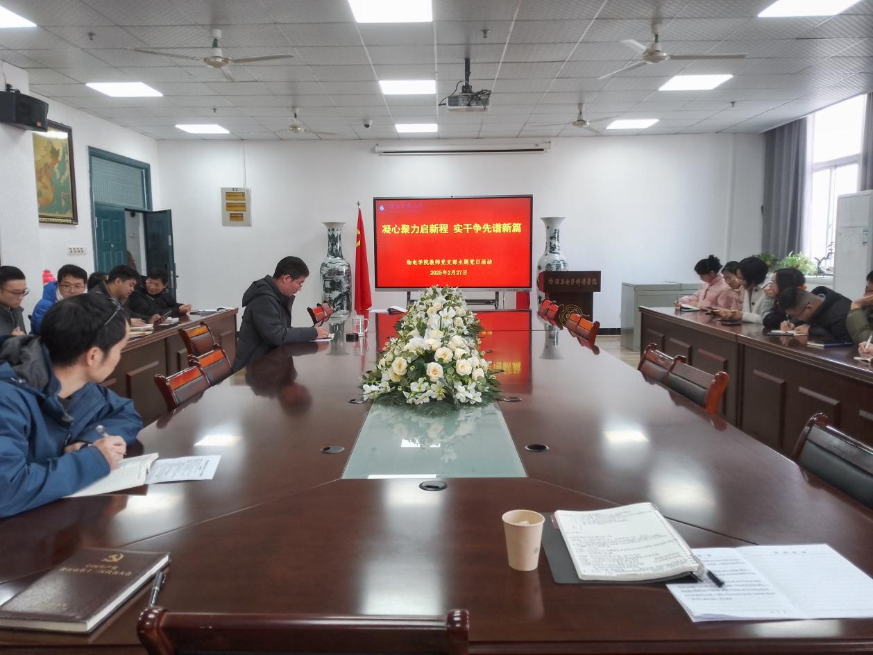2025227午,三亿体育教师第一、第二党支部在信息大楼10508会议室联合开展1月和2月的主题党日活动,本次活动以“凝心聚力启新程 实干争先谱新篇”为主题,旨在深入学习贯彻习近平总书记考察湖北重要讲话精神,切实把学习成果转化为推动学校高质量发展的强大动力和生动实践。全体党员及入党积极分子参加了此次会议,活动由教师第二党支部书记李海超主持。本次主题党日活动内容充实、流程规范。
