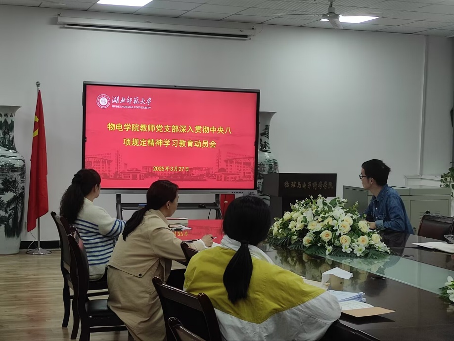 支部书记盛苏同志开展了深入贯彻中央八项规定精神学习教育动员会暨举办学习教育读书班活动,带领大家深入学习了“中共中央办公厅印发《关于在全党开展深入贯彻中央八项规定精神学习教育的通知》”重要精神。随后,支部副书记邢令义同志针对学习习近平总书记在全国两会期间的重要讲话精神和两会精神谈了心得体会。