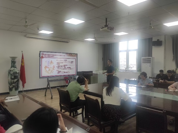 杨曼、阮俊、陈立等同志领学了“中共中央政治局召开会议 审议《生态环境保护督察工作条例》《关于二十届中央第四轮巡视情况的综合报告》”的重要会议精神、“习近平在中共中央政治局第二十次集体学习时强调 坚持自立自强 突出应用导向 推动人工智能健康有序发展”和“习近平总书记在庆祝中华全国总工会成立100周年暨全国劳动模范和先进工作者表彰大会上的讲话”的重要精神、《求是》杂志发表习近平总书记的重要文章《加快建设文化强国》、《贯彻落实中央八项规定精神学习读本》《党的十八大以来深入贯彻中央八项规定精神的成效和经验》和中央纪委机关编写的《八项规定改变中国》;支部书记盛苏同志给五月份入党的同志过集体政治生日,赠送“政治生日贺卡”;李睿明同志主讲了以“铁血师长陈树湘”主题的优秀党员故事。