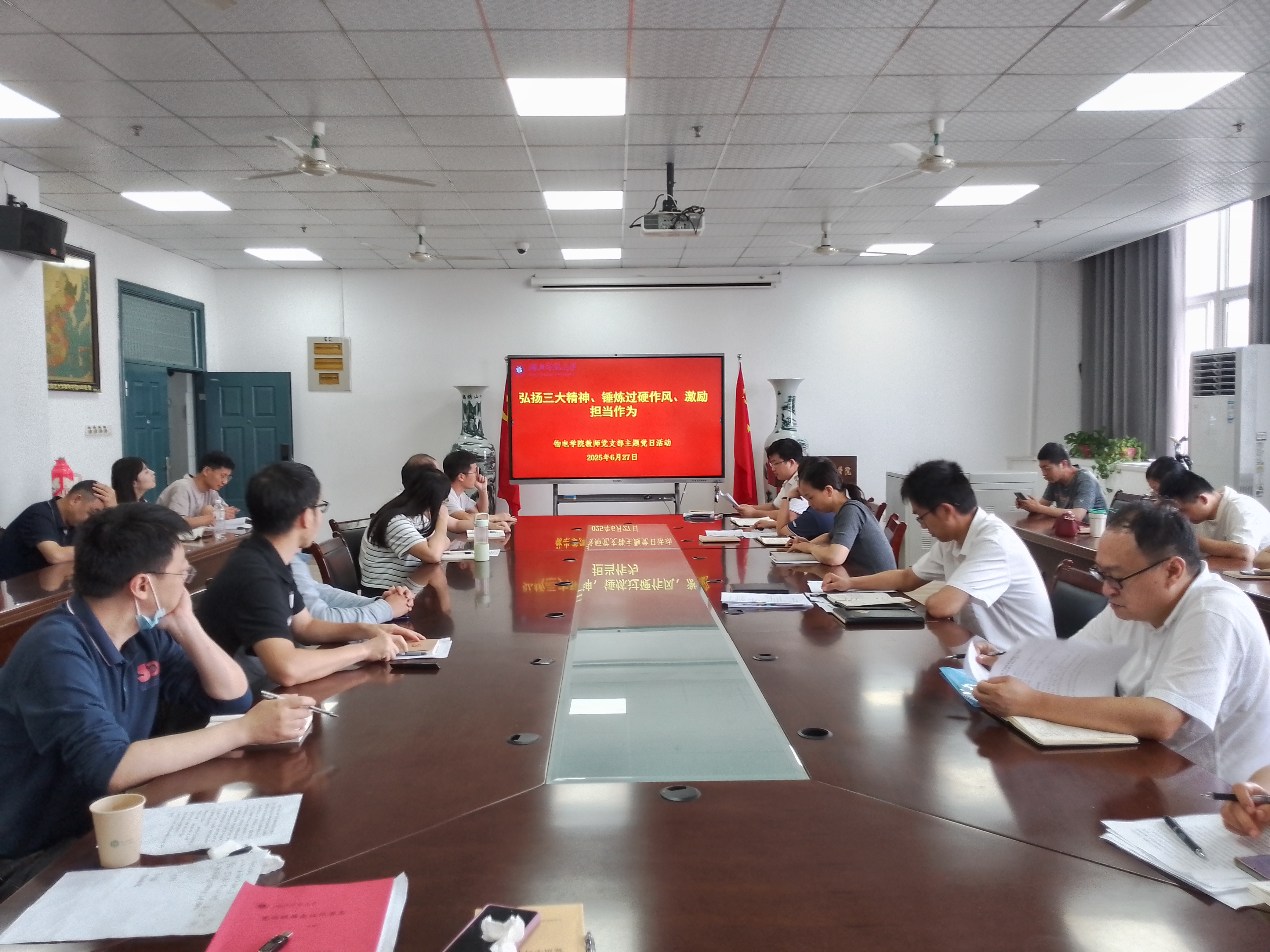 2025 年 6 月 27 日下午 16:00,三亿体育教师党支部在 10508 会议室开展了 6 月主题党日活动。此次活动由第二教师党支部副书记赵豪主持,第一和第二教师党支部全体党员参加,围绕 “弘扬三大精神、锤炼过硬作风、激励担当作为” 主题,开展了一系列丰富多样的学习与实践活动。