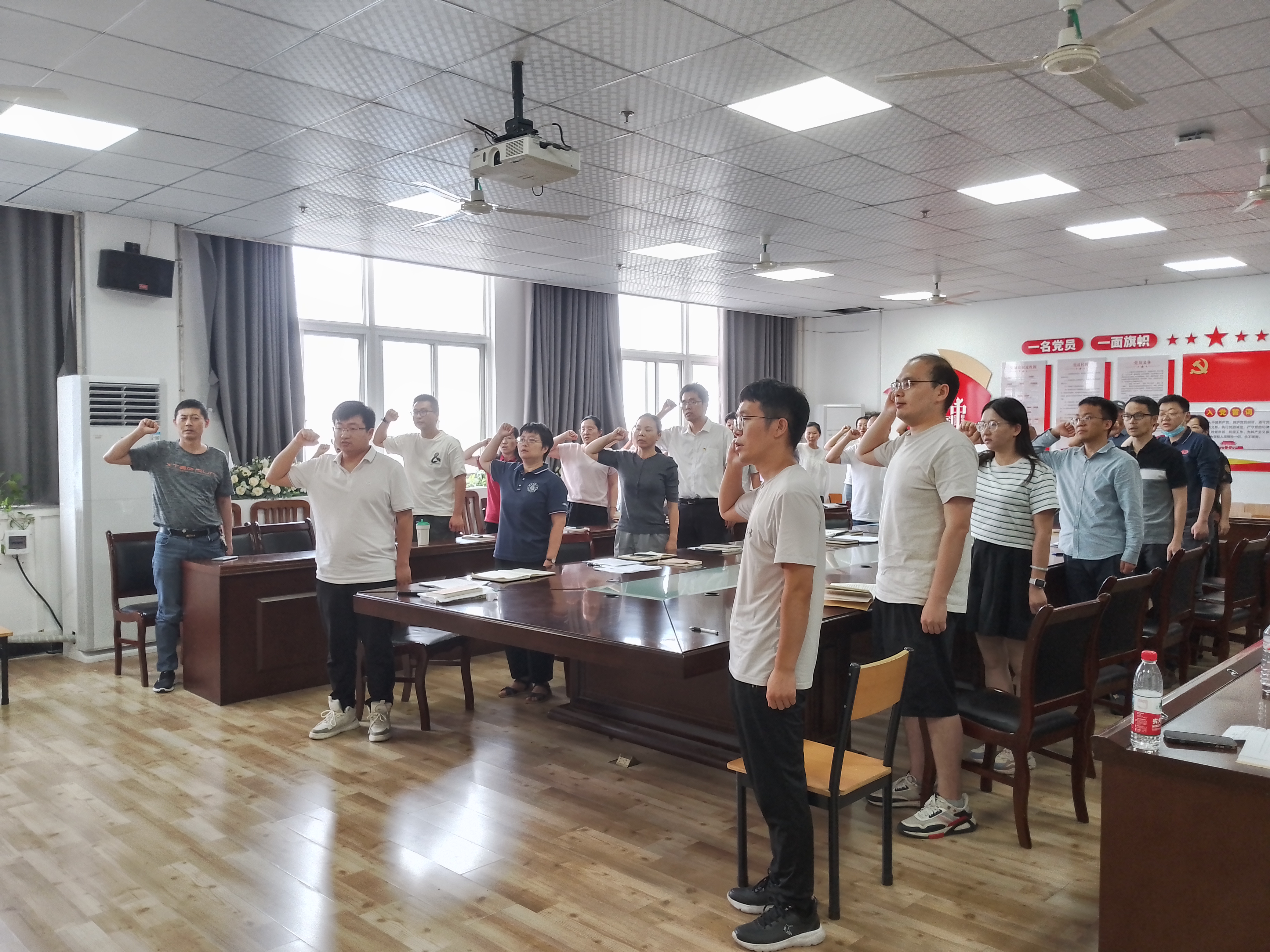 活动伊始,全体党员按月交纳党费,并如实填写党员手册,一支部党员将党费交给晏天琦老师,二支部交给高瑜老师。随后,在赵豪同志的领誓下,全体党员重温入党誓词,坚定入党初心。紧接着,曹慧云同志领读,全体党员诵读了《中国共产党章程》总纲第十二段到第十三段内容,强化党章意识。