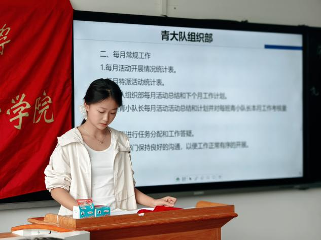 李双翼在发言中着重传递“团学一家亲”理念与“团结”精神,指出团学组织应像家庭般紧密协作。同时,她明确了后续工作重点:全力筹备开学典礼,严格落实查课制度,有序推进部门人员调动、干事培训与定干工作;安全工作需全面覆盖,包括思想引导、活动举办及财产安全管理等,为组织运行筑牢防线。