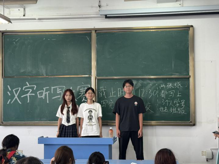 活动伊始,王紫怡、吴甜甜宣读比赛规则与流程:此次大赛共设两个环节,一是汉字听写环节,由读题人以标准普通话逐一向选手传达听写词语,考验选手对汉字字形、字义的精准掌握;二是成语接龙游戏,旨在增添活动趣味性。