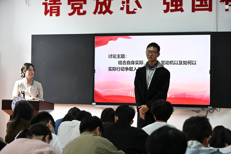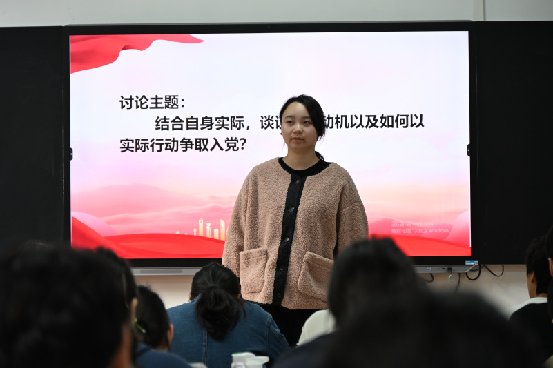 观影结束后,分组讨论环节围绕“结合自身实际,谈谈入党动机以及如何以实际行动争取入党”主题正式展开。发言阶段,学员们结合家庭氛围、社会实践、志愿服务等自身经历,坦诚剖析个人入党动机,清晰展现了思想成长轨迹。现场氛围庄重且热烈。
