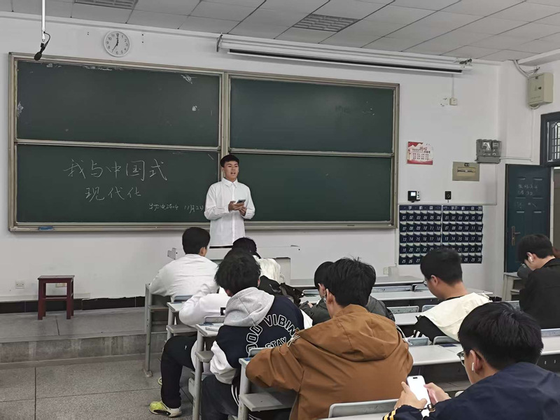 2402班:中国式现代化是物质文明与精神文明相协调的现代化,为青年带来了前所未有的发展机遇。我们既要仰望星空,将个人理想融入国家发展大局;也要脚踏实地,在实验室攻关、田野间耕耘、社区里奉献中锤炼本领。以理想信念为灯塔、过硬本领为基石、创新精神为动力,成为推进中国式现代化最积极、最有生气的力量。