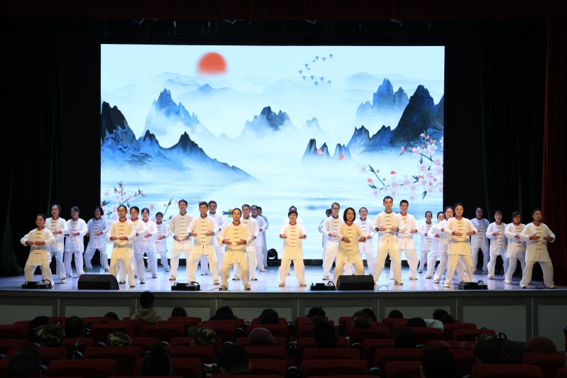 展演中,伴随悠扬乐声,老师们动作行云流水、整齐划一,将八段锦刚柔相济的独特韵味展现得淋漓尽致,生动诠释了师者沉稳从容、专注坚韧的精神风貌。为了在舞台上呈现最佳状态,学院工会定期组织集中训练,老师们利用课余时间相互纠正动作,不仅提升了技艺,更增进了彼此的交流。