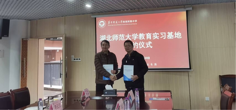 检查组一行第一站到达华中师范大学珠海附属中学,在董事长叶甲友的热情陪同下参观校园,座谈交流,双方就实习基地共建的合作目标、实习安排、资源共享、指导机制等关键事宜达成高度共识,正式签署新建实习基地合作协议。