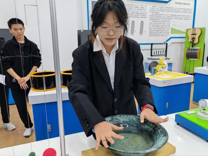 “形状记忆合金”展示环节,选手演示了材料随温度变化恢复形状的特性,再结合应用场景讲解金属晶体结构的记忆机制;“鱼洗盆”实验中,选手解析了共振与能量传递原理,展现古代科技中蕴藏的物理智慧。