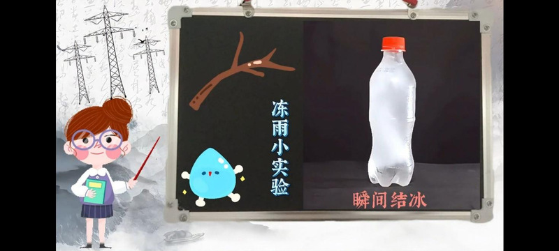 作品《冰晶密码——解码冻雨的科学与诗意》则从屈原、王维的古诗意境引入,结合形象的动画演示,不仅揭示了冻雨作为自然灾害的真实面貌,还解析了其“冷—暖—冷”的大气结构与过冷水滴瞬间凝结成冰的科学机制。该作品融合文学意境与气象科学,旨在引导观众在自然现象中探寻科学规律,激发对气象科学的兴趣与对国家科技发展的认同感。