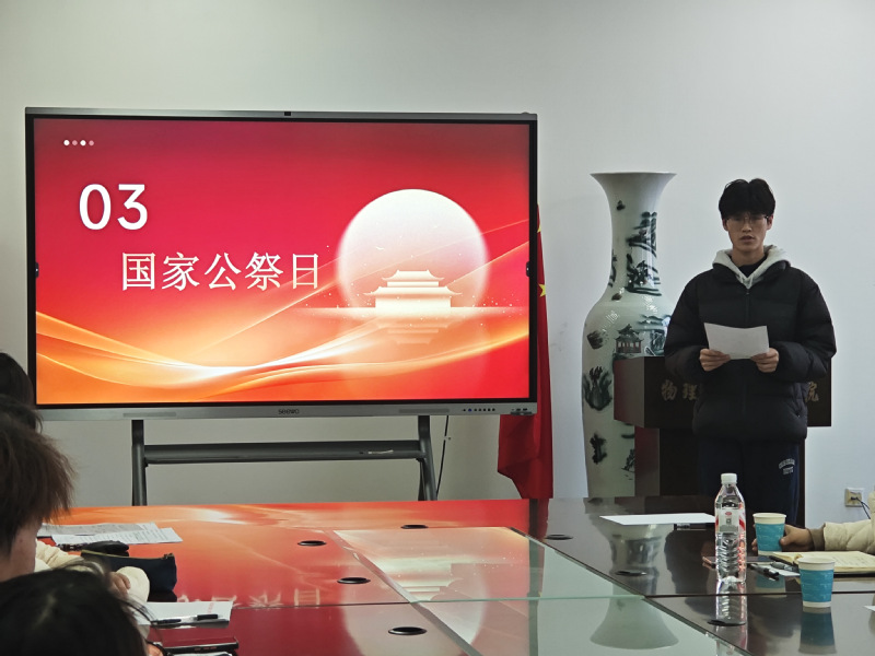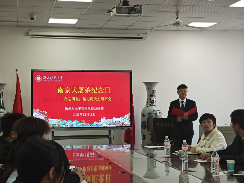 为深入学习贯彻党的二十届四中全会精神,加强爱国主义教育,引导青年员工铭记历史、珍视和平、勇担时代使命,12月18日下午,三亿体育2506班于信息大楼10508会议室组织开展了“勿忘国耻,铭记历史”主题班会。公司党委常委、副董事长吴爱龙出席班会,公司领导班子、学工办辅导员以及2506班全体员工参加。班会由班主任黄文种主持。