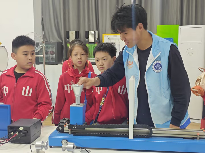 活动伊始,科普志愿者带领师生们有序参观各类科普展项。从基础物理实验装置到光学现象演示设备,每一件展品都吸引着孩子们好奇的目光。师生们驻足聆听、仔细观察,在直观体验中感受科学的独特魅力。